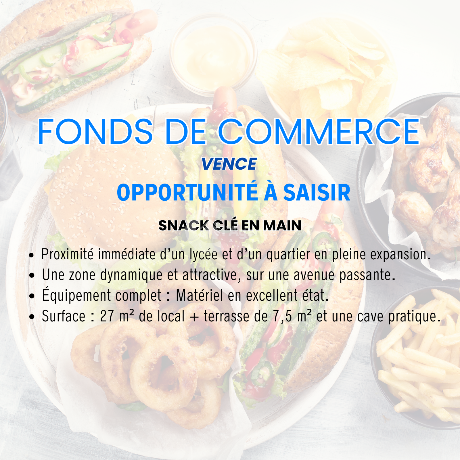 Ce snack, idéalement situé, bénéficie d’un emplacement stratégique à proximité immédiate d’un lycée et d’un quartier en pleine expansion, garantissant une clientèle fidèle et régulière.
