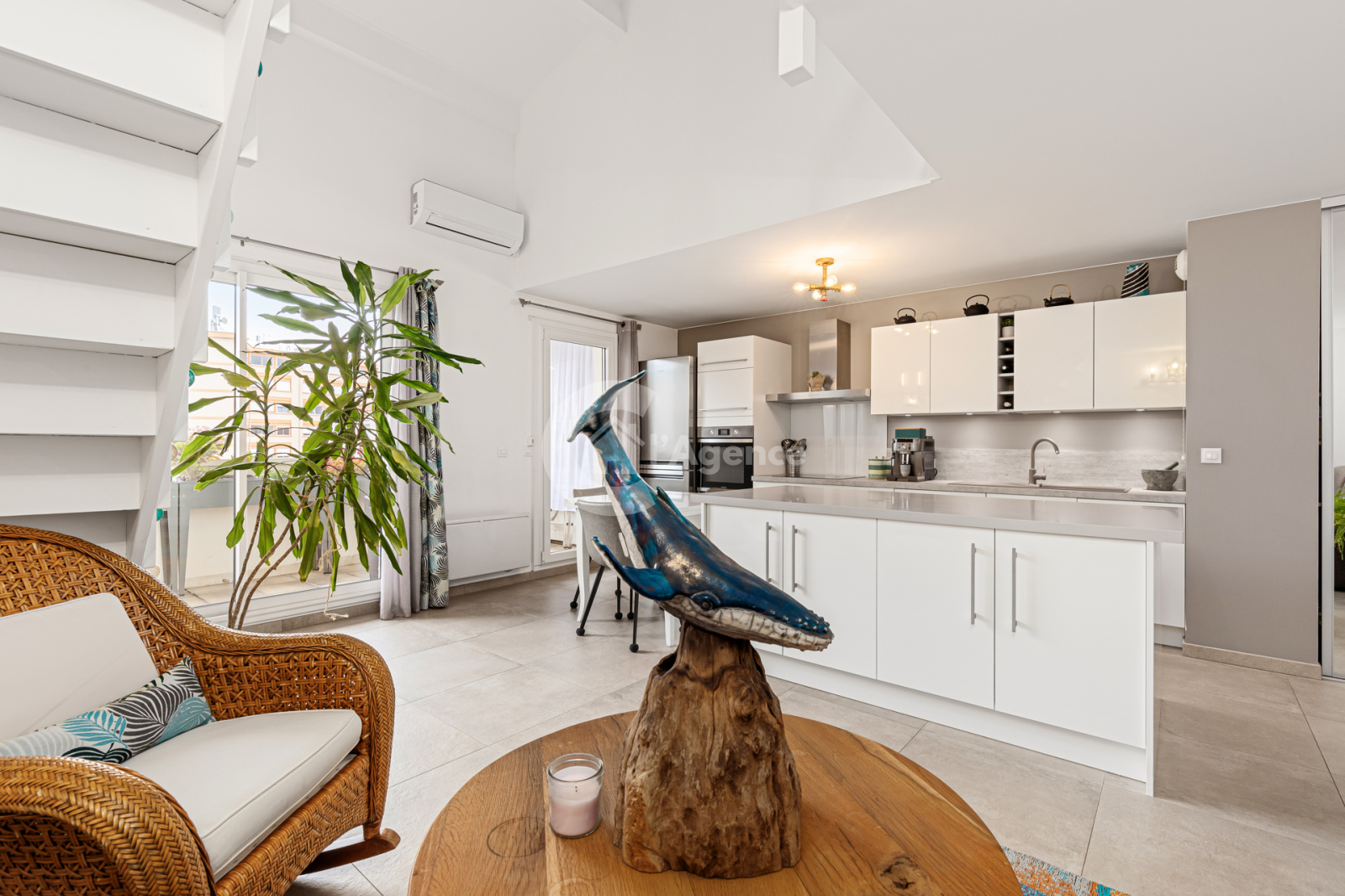 - Atouts : Belle hauteur sous plafond dans le séjour, terrasse ensoleillée, climatisation réversible.
