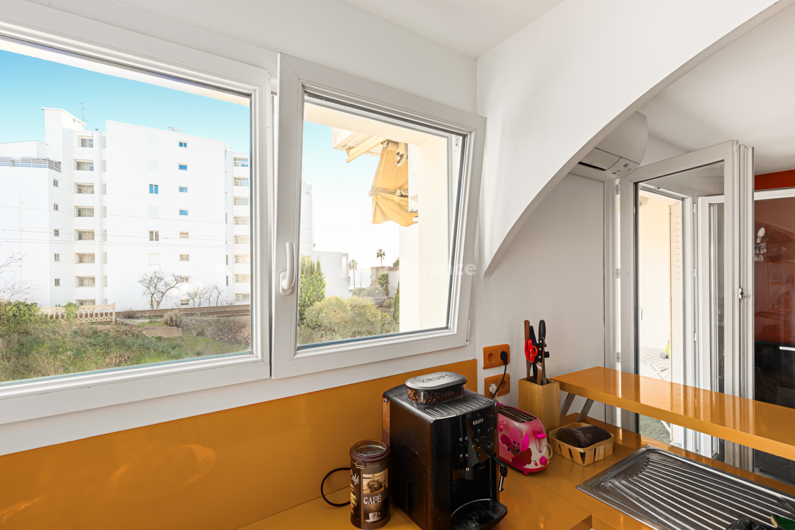 Cuisine : Ouverte sur le séjour, avec un aperçu mer depuis la fenêtre, idéale pour profiter du charme méditerranéen en préparant vos repas.